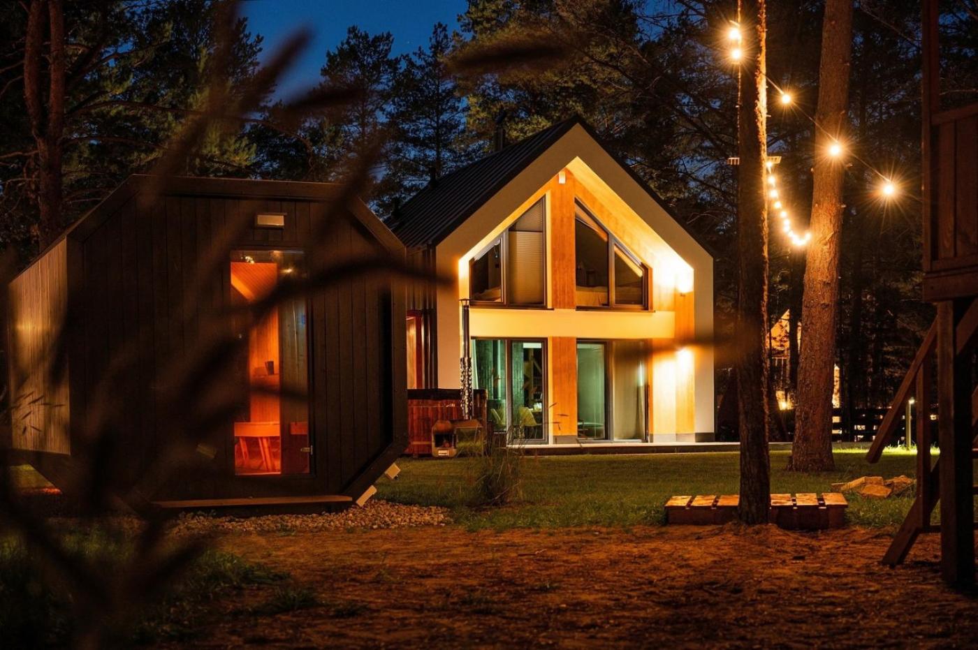 Dom z 2 sypialniami. This holiday homes standout features are the hot tub, sauna and fireplace. Featuring a private entrance, this air-conditioned holiday home is comprised of 1 living room, 2 separate bedrooms and 2 bathrooms with a bath and a shower. Guests will find a stovetop, a refrigerator, a dishwasher and kitchenware in the fully equipped kitchenette. The holiday home also has a barbecue. Boasting a terrace with garden views, this holiday home also offers a washing machine and a flat-screen TV. The unit offers 4 beds. Dom wakacyjny - 6 osobowy. Powierzchnia pokoju ok.: 60 mkw.