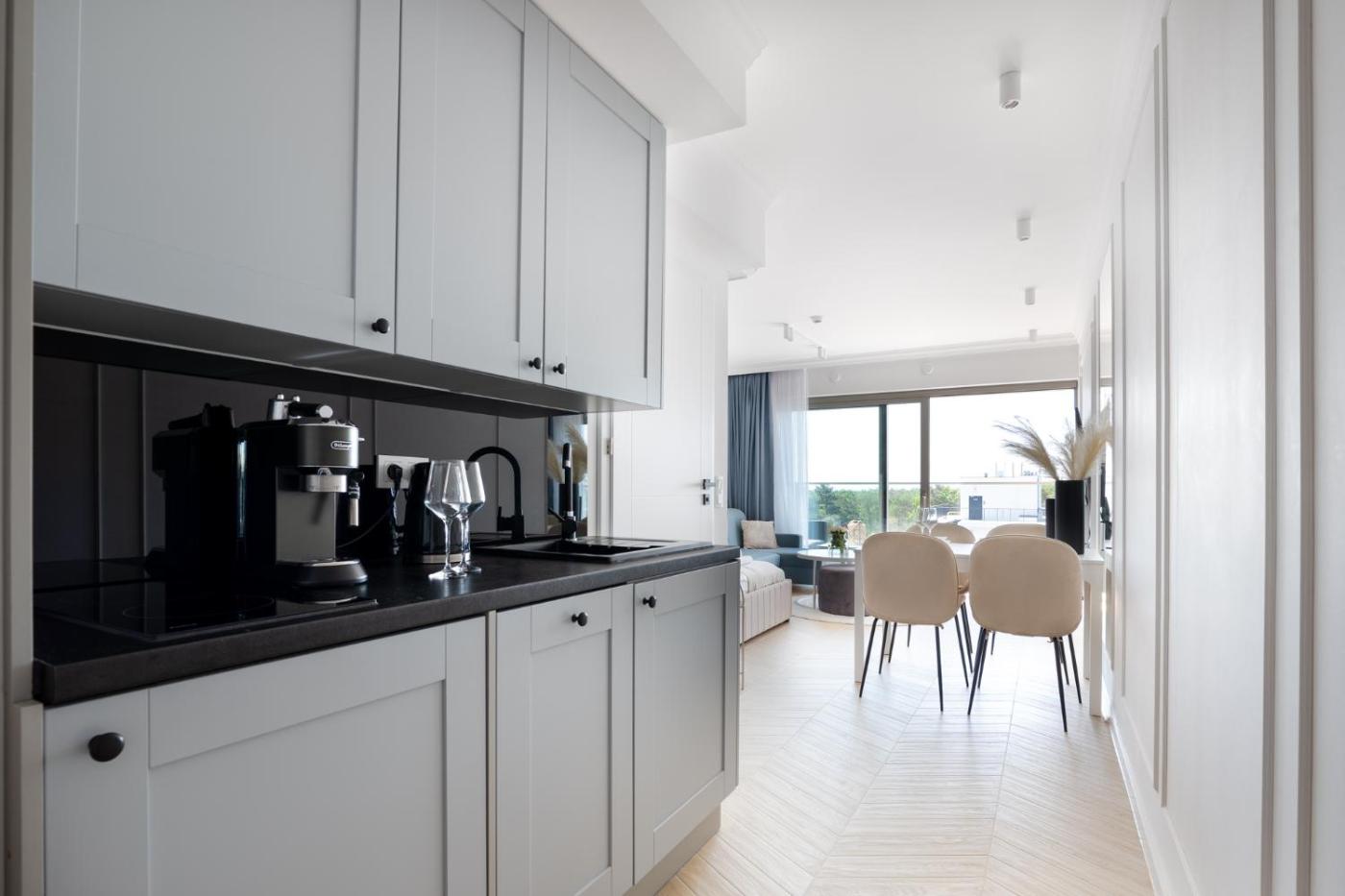 Apartament typu studio. Boasting a private entrance, this air-conditioned apartment features a kitchenette, 1 bedroom and 1 bathroom with a bath or a shower and a hairdryer. In the fully equipped kitchenette, guests will find a stovetop, a refrigerator, a dishwasher and kitchenware. Featuring a terrace with sea views, this apartment also features soundproof walls and a flat-screen TV. The unit has 1 bed. Apartament - 4 osobowy. Powierzchnia pokoju ok.: 28 mkw.