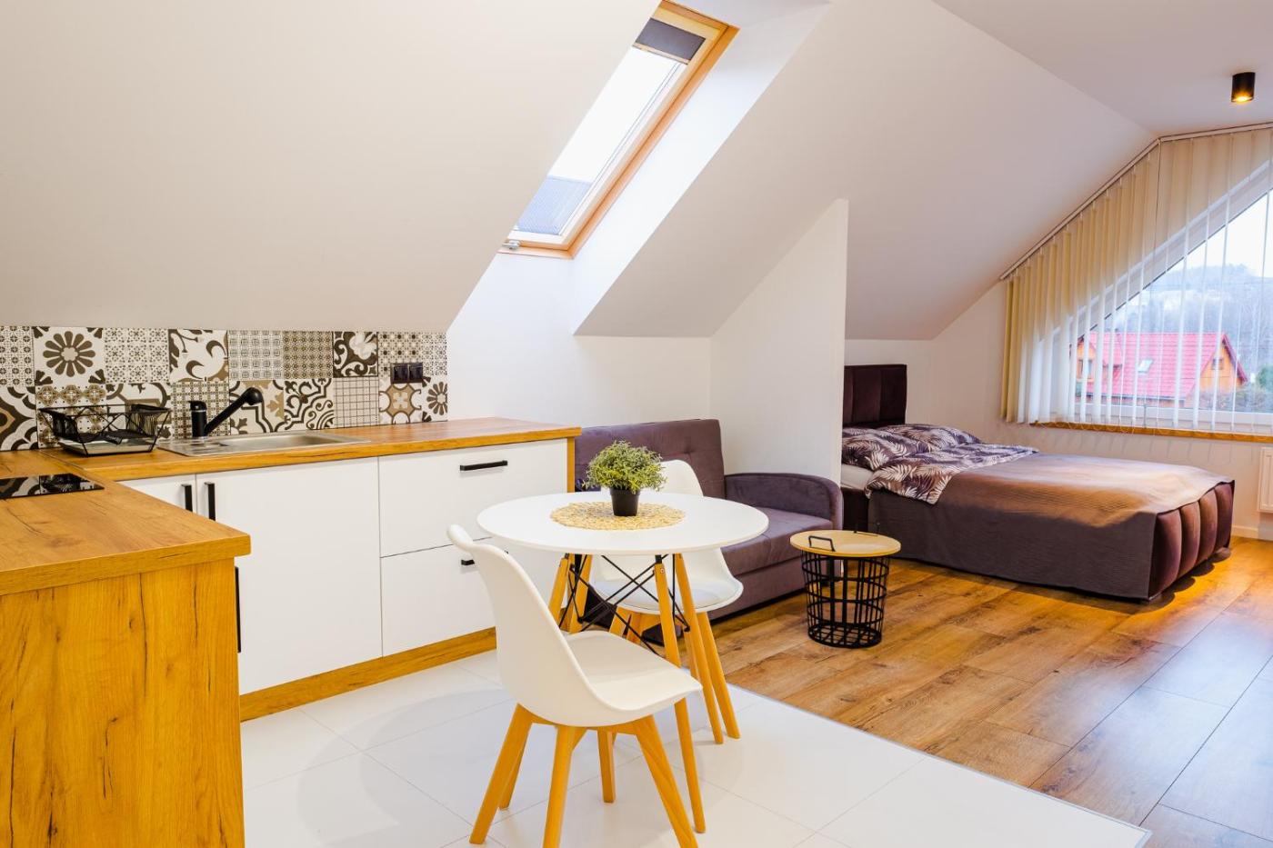 Apartament z sauną. Guests will have a special experience as the apartment features a sauna. This air-conditioned apartment consists of 1 living room, 1 separate bedroom and 1 bathroom with a bath. Guests will find a stovetop, a refrigerator, kitchenware and an electric kettle in the well-equipped kitchenette. The apartment also offers a barbecue. Featuring a terrace with garden views, this apartment also provides soundproof walls and a flat-screen TV with cable channels. The unit offers 2 beds. Apartament - 4 osobowy. Powierzchnia pokoju ok.: 40 mkw. ;
