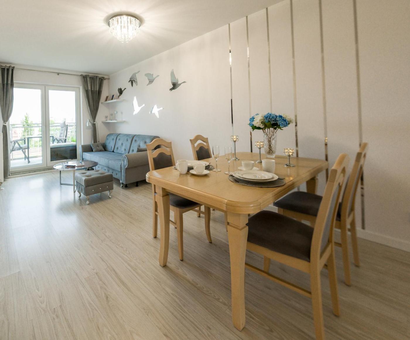 Apartament z 1 sypialnią. This apartment comprises 1 living room, 1 separate bedroom and 1 bathroom with a walk-in shower and free toiletries. Meals can be prepared in the well-fitted kitchen, which comes with a stovetop, a refrigerator, a dishwasher and kitchenware. Featuring a balcony with city views, this apartment also provides a washing machine and a flat-screen TV. The unit offers 2 beds. Apartament - 4 osobowy. Powierzchnia pokoju ok.: 50 mkw.